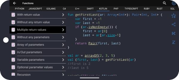 Aplikasi ini dilengkapi dengan tutorial pemrograman dasar hingga tingkat lanjut, cocok bagi mereka yang ingin belajar coding dari nol.