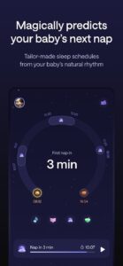 Aplikasi ini memberikan prediksi waktu tidur ideal untuk bayi. Prediksi disesuaikan dengan usia dan jadwal tidur sebelumnya.