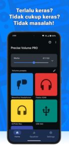 Precise Volume 2.0 + Equalizer adalah aplikasi pengatur volume yang memberi kontrol lebih halus dibanding volume bawaan Android. Kamu bisa mengubah level suara dengan lebih detail, sehingga tidak ada lagi volume yang terasa terlalu kecil atau terlalu besar.